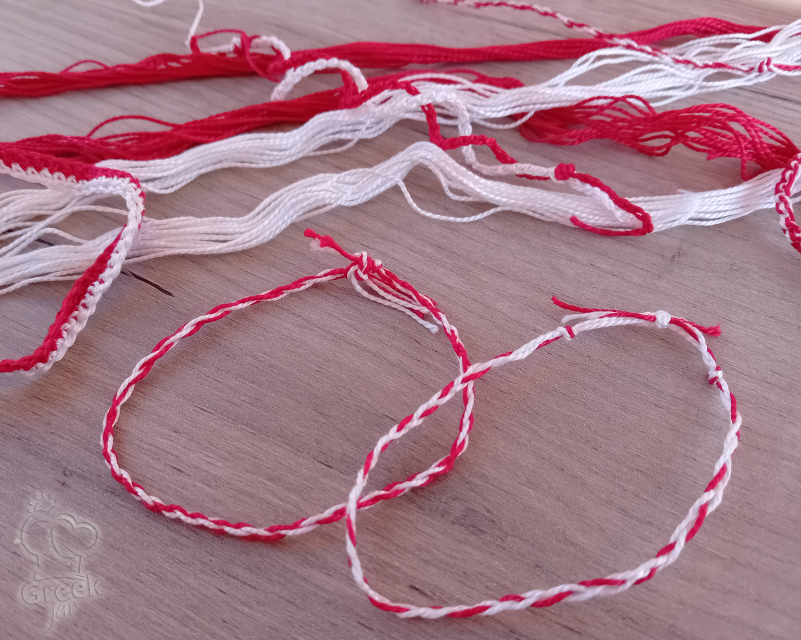 Το έθιμο αυτό πιστεύεται ότι έχει τις ρίζες του στην αρχαία Ελλάδα και πιο συγκεκριμένα στα Ελευσίνια μυστήρια, συνυφαίνοντας εδώ και αιώνες την ελληνική λαογραφία με την αλλαγή των εποχών. Την πρώτη ημέρα του Μαρτίου, αν όχι όλοι, αρκετοί εδώ στην Ελλάδα αλλά και σε άλλες χώρες των Βαλκανίων κρατούν ακόμη ζωντανή αυτή την παράδοση και στολίζονται με αυτά τα βραχιόλια, που συνήθως αποτελούνται από απλές κόκκινες και λευκές κλωστές που έχουμε στρίψει μεταξύ τους. Το κόκκινο αντιπροσωπεύει το πάθος και τη ζωή, ενώ το λευκό συμβολίζει την αγνότητα, την ελπίδα και την υπόσχεση για ένα νέο ξεκίνημα.
