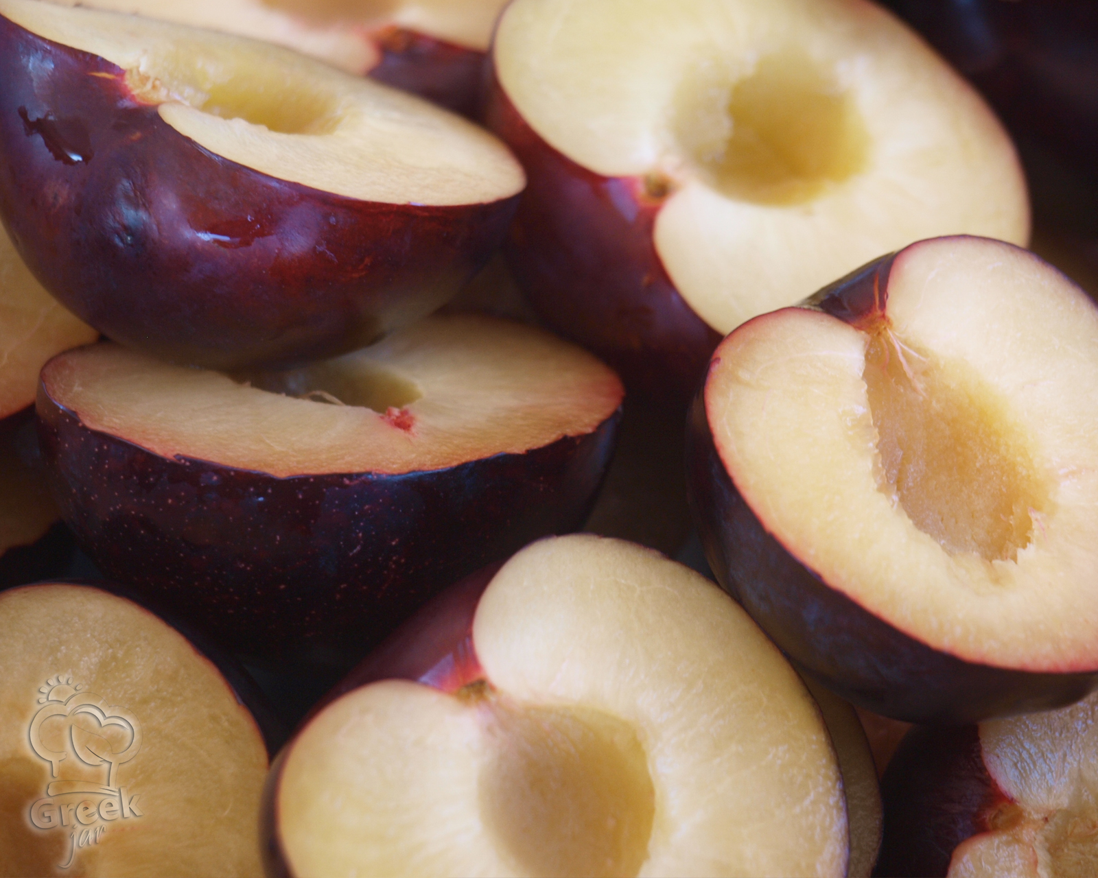 1. Remove the seeds from the vanilla plums and cut them into 8 pieces.